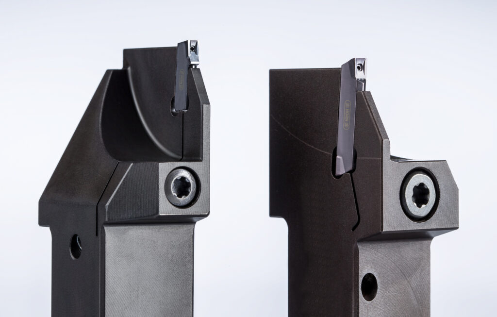 まず工具側では、高剛性設計の溝入れバイトを使用するのが効果的です。特に内径溝入れの場合は、工具の突き出しを短くする工具のシャンク径を大きくする、超硬工具を使うことで振動を抑える工夫が必要です。また、HORNをはじめとした高剛性・低振動設計の高品質な工具を選定することで、ビビリの発生リスクを大きく低減できます。