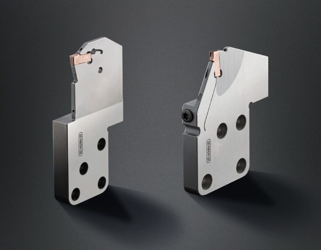 HORN工具の強みは、溝入れ工具の既製品ラインアップが豊富で、溝幅や形状に応じて柔軟に対応できる点にもあります。よほど特殊な形状でない限り、多様な溝入れ加工に対して同一ホルダで対応できるため、段取り時間や工具費も大きく削減できます。