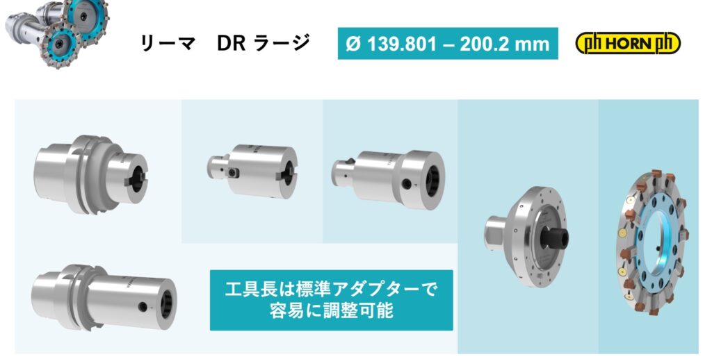 さらに驚くべきは、ミディアムからラージにかけてのラインナップです。通常ならボーリングしか選択肢に入ってこないようなφ100を超える大径穴であっても、ヘッド交換式リーマを使って一発で高精度な仕上げが可能です。