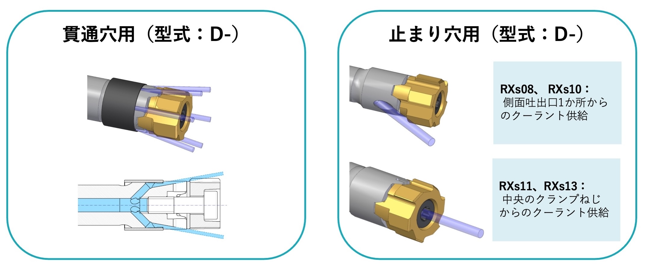 • ヘッド交換式の強み: 多くのヘッド交換式システムでは、ホルダから直接刃先へクーラントを吐出できます。